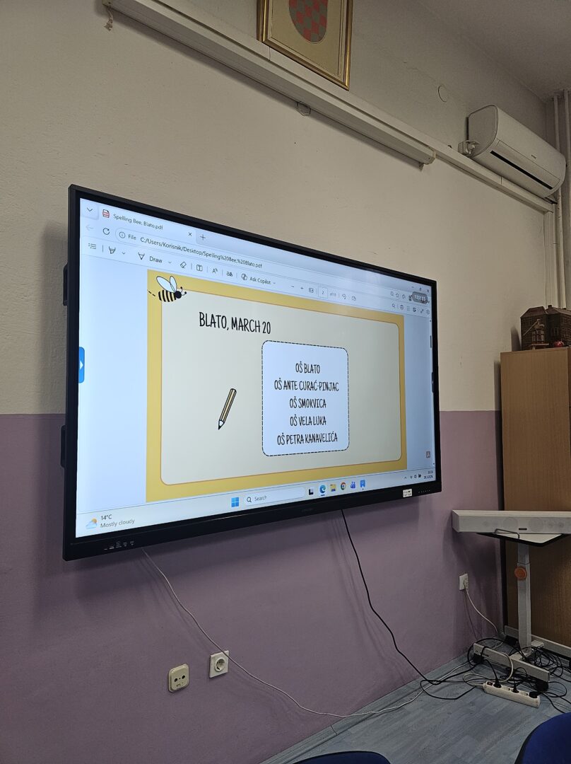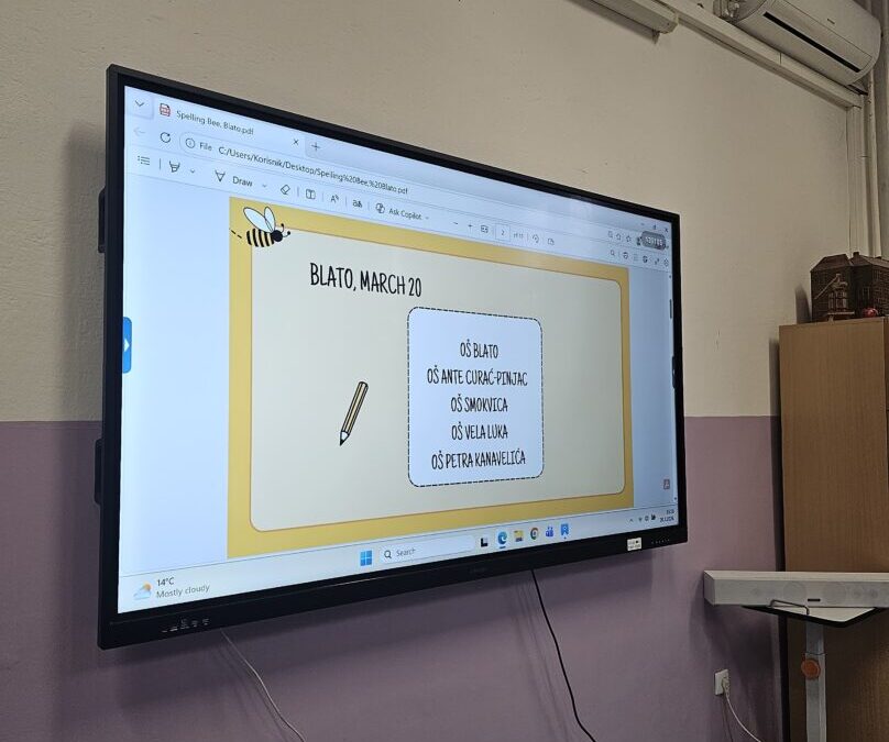 U sklopu B1 aktivnosti Spelling Bee, 20. ožujka 2026. godine u Osnovnoj školi Blato održano je međuotočno natjecanje u sricanju, već treću godinu zaredom. Ovaj vrijedan i poticajan događaj okupio je učenike iz pet osnovnih škola s otoka: OŠ Vela Luka, OŠ Blato, OŠ Ante Curać-Pinjac, OŠ Smokvica i OŠ Petar Kanavelić.
